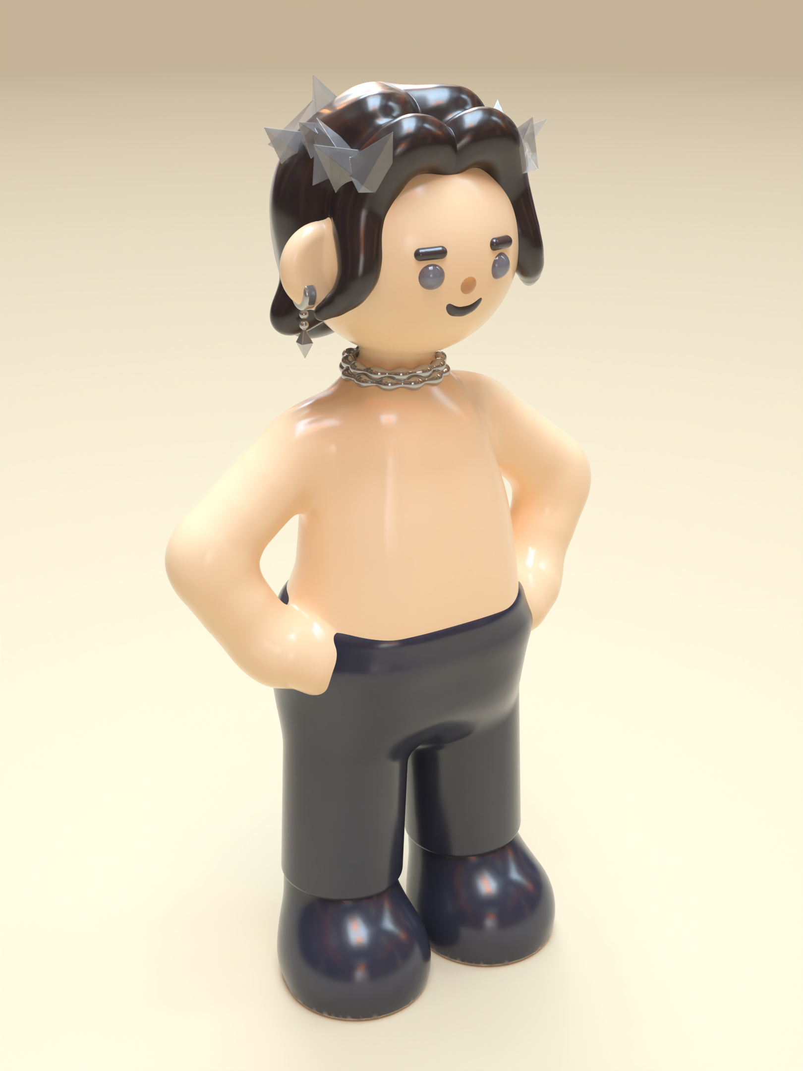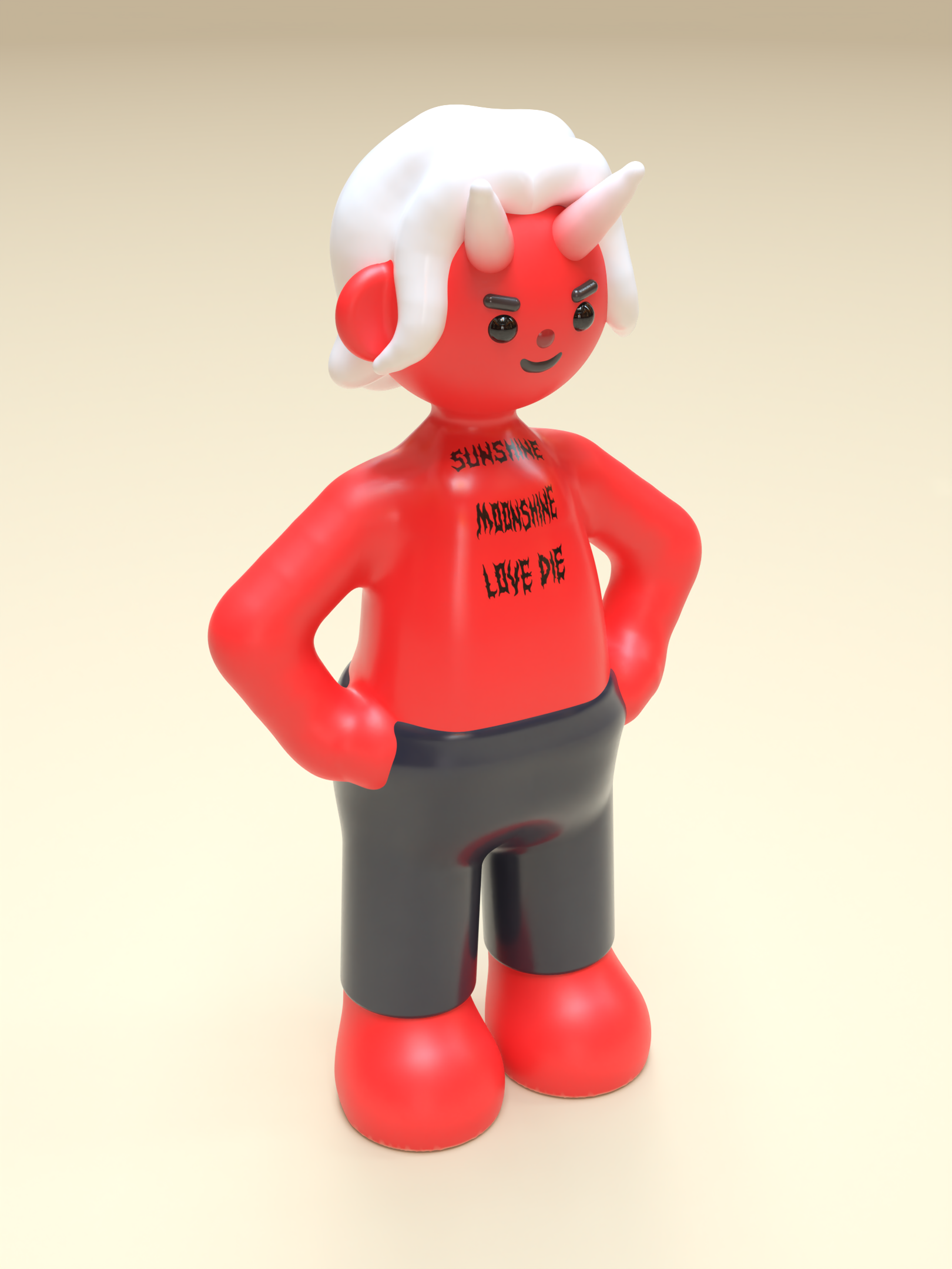 Small cartoon figurine of Jeff Satur's character Redgiant featured in his concert VCR. For this project I used the 3D program Womp for the first time.